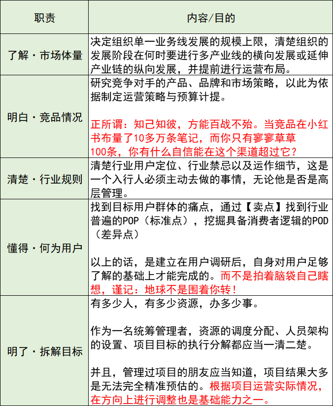 运营总监不应该是成天把自己关在书房的人,写着战略分析和STP定位。这种情况经常出现在跳级晋升的高管身上,他们没有真实的基层工作经验,对各类型渠道的理解、实操的工作内容及工作量认识较为浅薄。最终导致在领导过程中,偏离更好的市场发展路径。