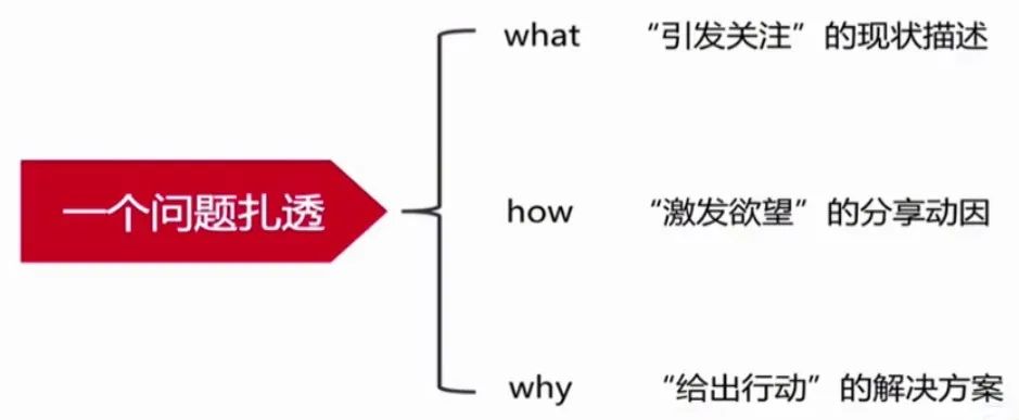 它背后的成功要素就是一个问题扎透,这里面分别用了what、how、why来给大家解释。