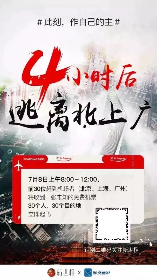 这个是新世相的逃离北上广活动,按理说这个逃离北上广的梗并不是很新,如果查的话,你会发现有很多品牌用过这个梗,但是为什么新世相能把它做成功,这是在没有大V助阵的情况下,做的还蛮成功的,据说当天就破了百万级阅读量,最后有几千万人看过这个活动,所以来说是一个非常成功的事情。