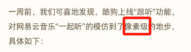 “一直战斗在死盯网易云音乐新功能一线的 酷狗音乐“山寨办”团队 ”