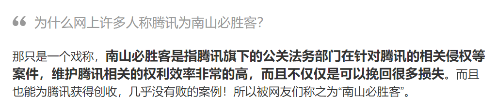 在维护版权这方面被调侃为——南山必胜客,