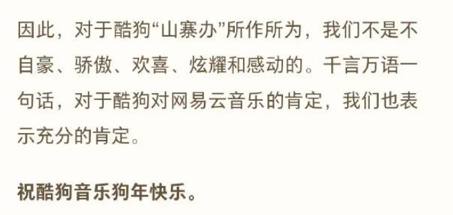 对酷狗方的回应表示——