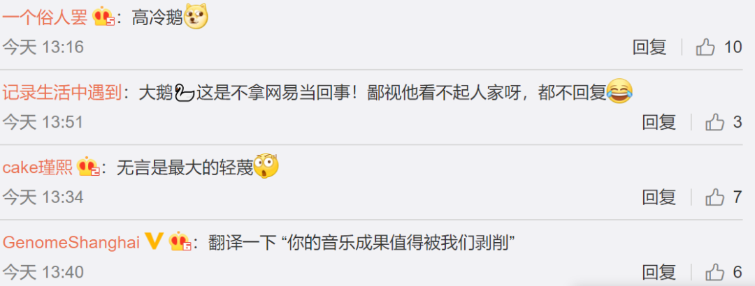 QQ音乐官微评论区截图:
