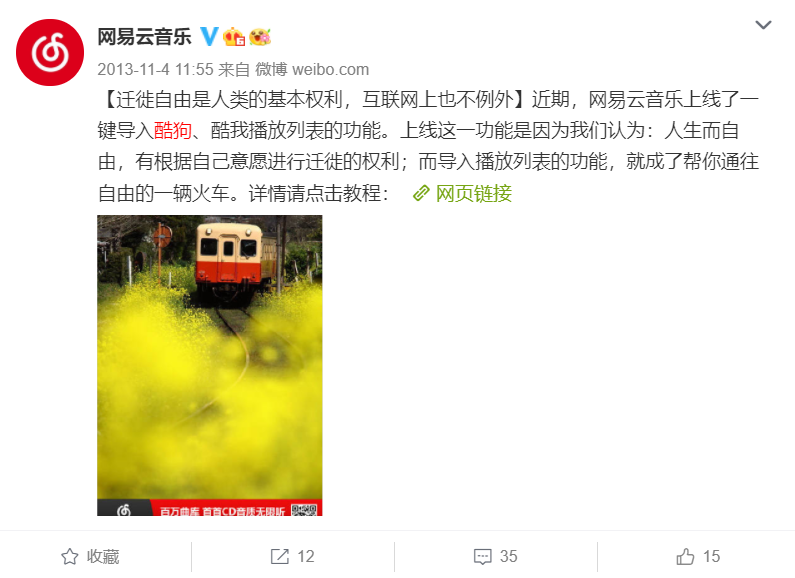 上线一键导入酷狗、酷我播放功能,表示“迁徙自由是人类的基本权利”: