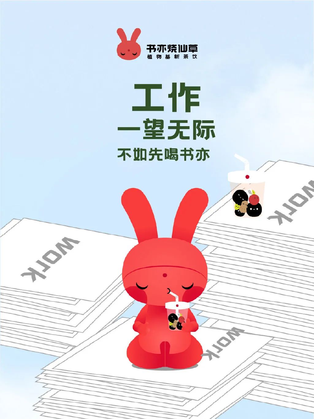 最近,书亦烧仙草整体都进行的年轻化升级,传递健康轻盈的品牌理念。我们发现:书亦烧仙草的“书”字logo已被一只红色的“小兔子”所替代,品牌字体也做了更新。