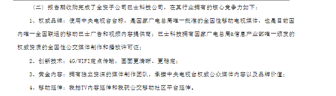 “使用中央电视台台标,是国家广电总局唯一批准的全国性移动电视媒体,也是目前国内唯一全国联运的移动巴士广告和视频内容提供商;旗下子公司巴士科技拥有国家广电总局&信息产业部唯一颁发的权威资质的全国性公交媒体制作和播放许可证。”在2015年年报中,巴士在线在核心竞争力一栏中这样描写自己。