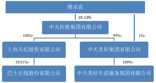 (巴士在线与中天控股集团有限公司关系图 图源:乐居财经)