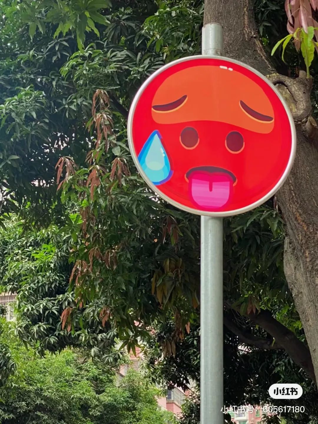 不得不说,这表情好适合夏天闷热的广州啊,没想到emoji居然还能这么用。