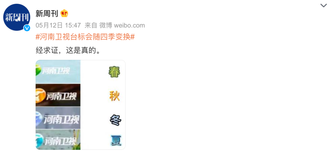 近日,河南卫视因“四季台标”再次出圈,因为网友惊奇地发现河南卫视的台标随着季节变化是会变的。