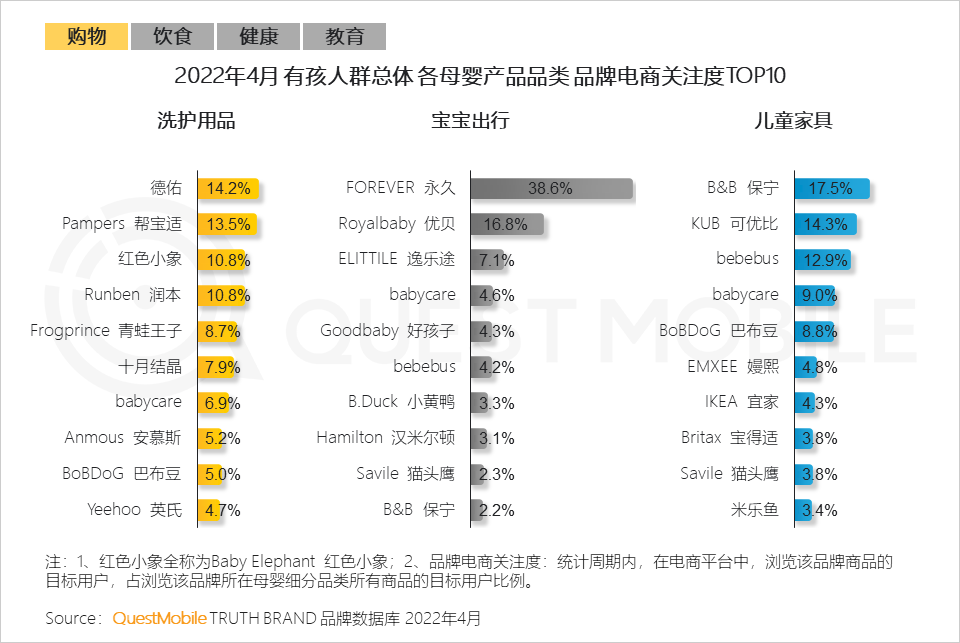 5、对于母婴品牌选择,除部分国际大牌,各领域国产知名品牌也成为宝爸宝妈们的重要选择,许多全品类泛母婴品牌表现亮眼