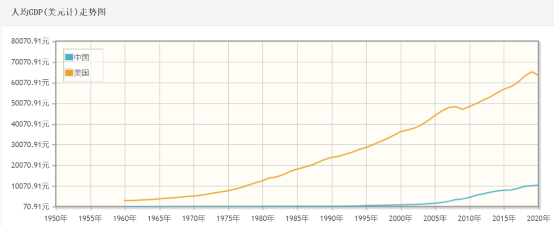 2020年中国人均GDP1.13万美元,相当于美国1970年代的水平。