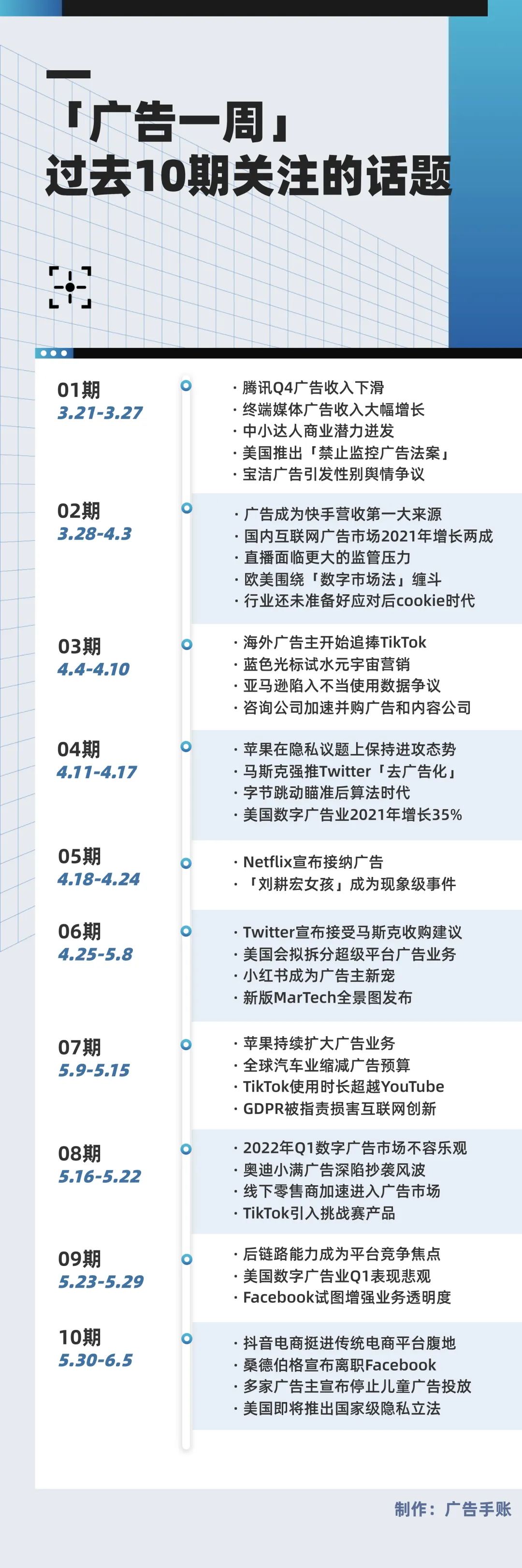 说长不长,说短不短。「广告一周」已经跟进了10期,回过头看,它确实记录了一些行业的重大事件以及趋势变化。这些记录下的文字也在提醒我,这个行业仍然非常精彩。