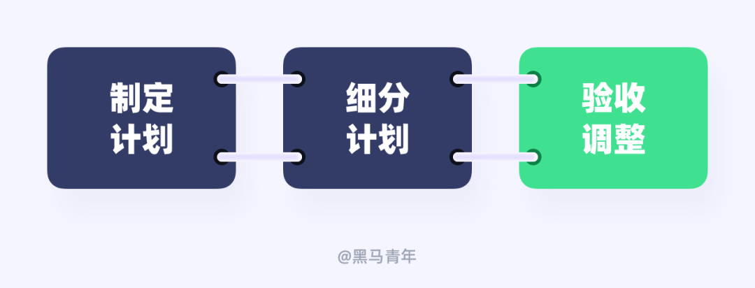 有了明确的目标需要制定有效的计划,把目标进行拆分,细分之后更利于完成和验收,进而及时调整方向。在团队里面我们经常会汇报进度,验收目标的完成率,也会根据行业的变化做出调整,我们需要把这个流程运用起来。