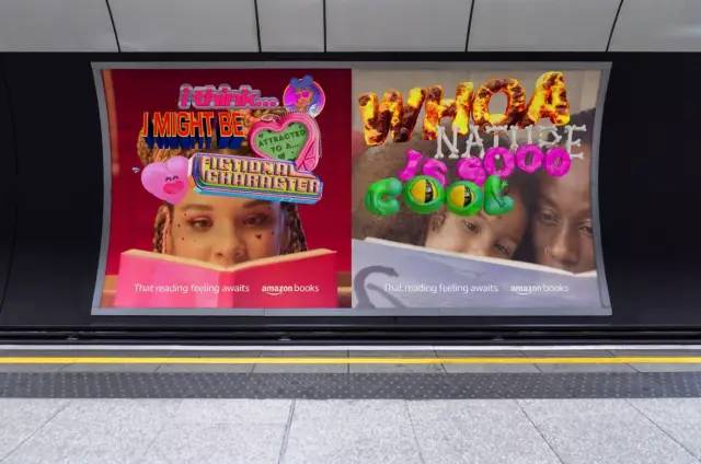 似是为了回应这段时间社会上有关亚马逊图书的批评,比如《纽约时报》对其迫于阿联酋压力限制LGBTQIA+内容,这轮campaign邀请多名艺术家、插画师共同参与,以天马行空的视觉和想象力,展示人们阅读时的感受,侧面反映亚马逊书店的包容性、丰富性。