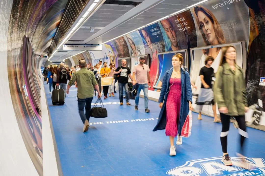 Paramount+在伦敦的人行道、隧道和公共汽车上覆盖了这些图书馆,以宣传他们在英国推出的众多娱乐图书馆。人行道、隧道可以带给受众沉浸式体验,提升广告传播效果;公共汽车车身广告可以给受众强烈视觉冲击。利用三种场景的不同宣传效果,宣传其娱乐图书馆的趣味,打破了常规图书馆宣传套路。