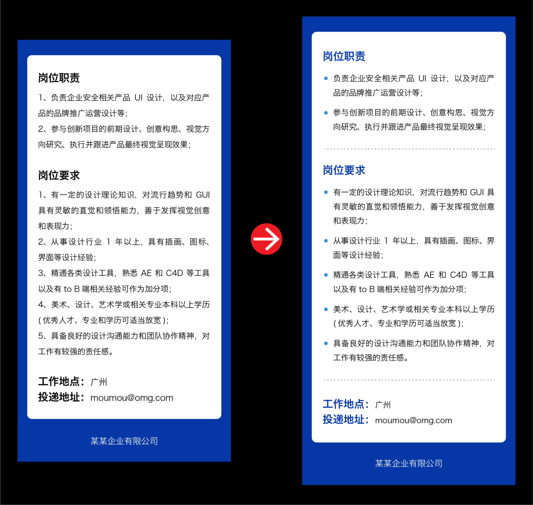 每次看到这样的排版,我都有点无奈。这么多文字,真的不打算优化一下?还是没意识到?其实这种情况已经不是一两次,所以接下来我要细说一下,如何处理这类信息的编排。