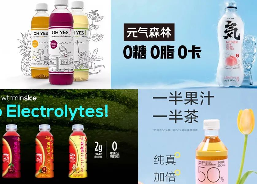 也少不了中国的元气森林“无糖新主张”和喜茶“真茶真果汁”的果汁茶。
