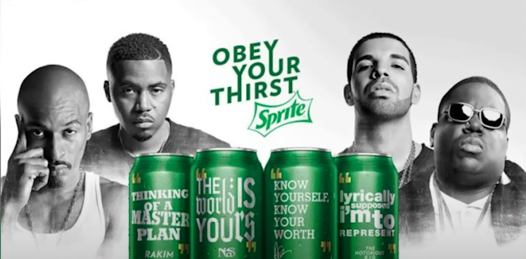 这要归功于可口可乐公司的高管 Jamal Booker 和 年轻的品牌经理 Daryl Colbin,两人开创性地主导了1994年的“Obey your Thirst” Campaign,引领了当时主流品牌与嘻哈文化合作的趋势。近年来甚至有人总结,雪碧是如何影响了嘻哈音乐的发展历史。