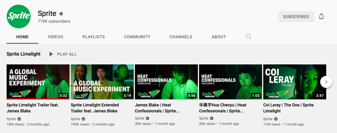 雪碧的不同之处在于,它没有追随最知名的艺术家或名人,而是追寻对文化有独特观点和表达的音乐人。同时雪碧广告的创意调性高度统一:“Stay true & Be true to yourself”。