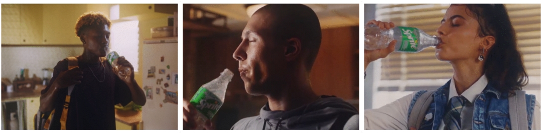 7月份配合透明新瓶上市,雪碧已经在北美推出了广告片“New Bottle. Same Sprite.” 由 NBA 球星安东尼·爱德华兹(Anthony Edwards)和特雷·杨(Trae Young)主演。在这只雪碧与创意机构Majority合作的广告片中,还致敬了2010年经典的 Drake 广告的创意。承上启下,充满致敬的意味。