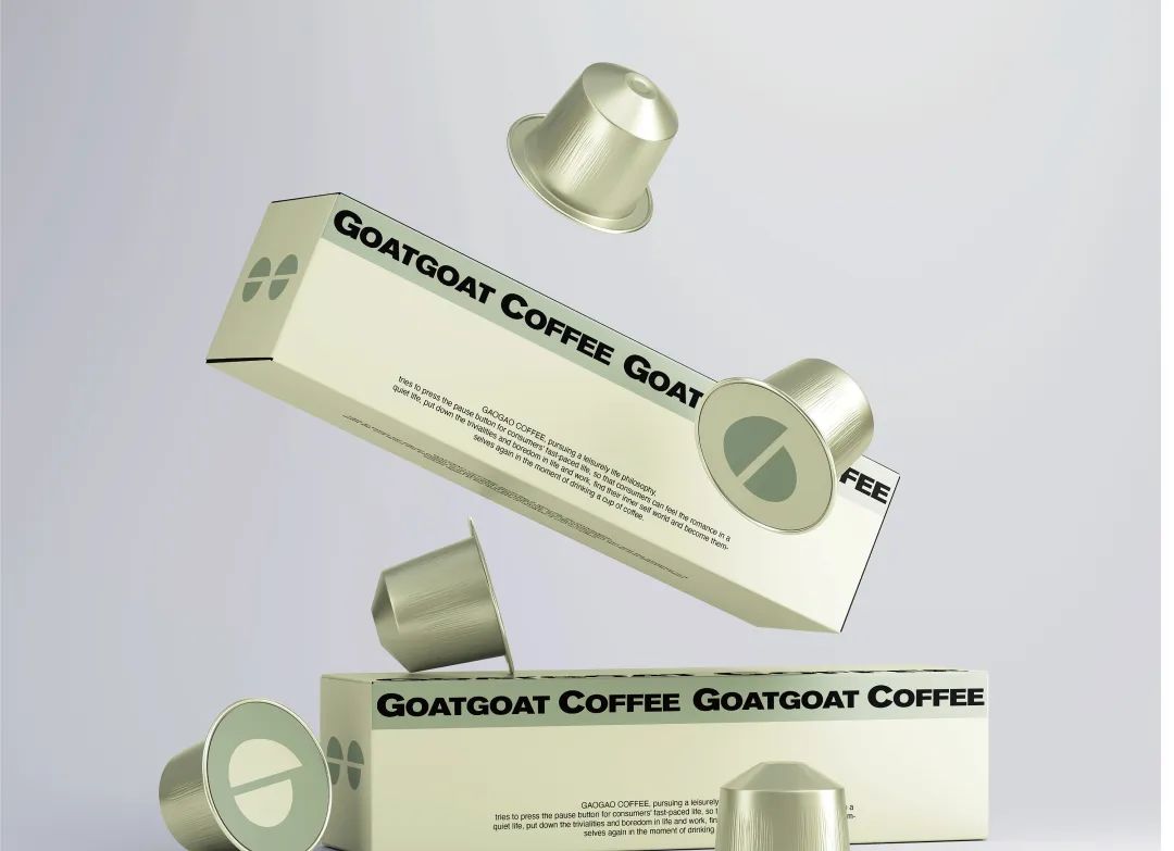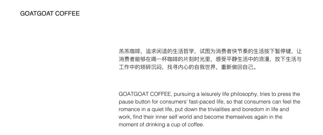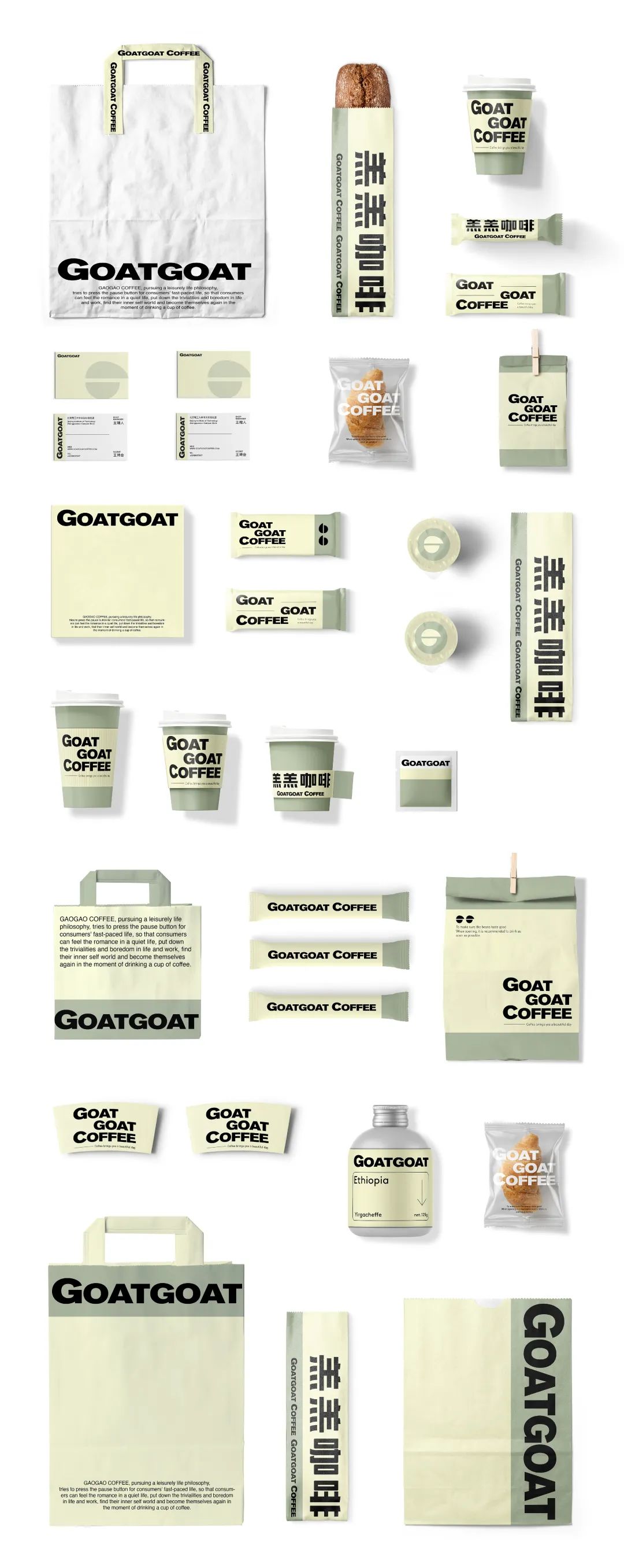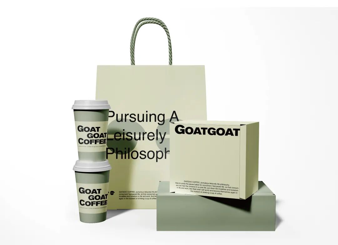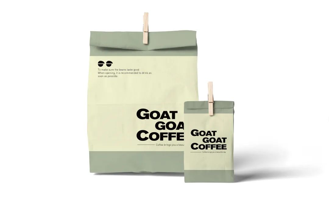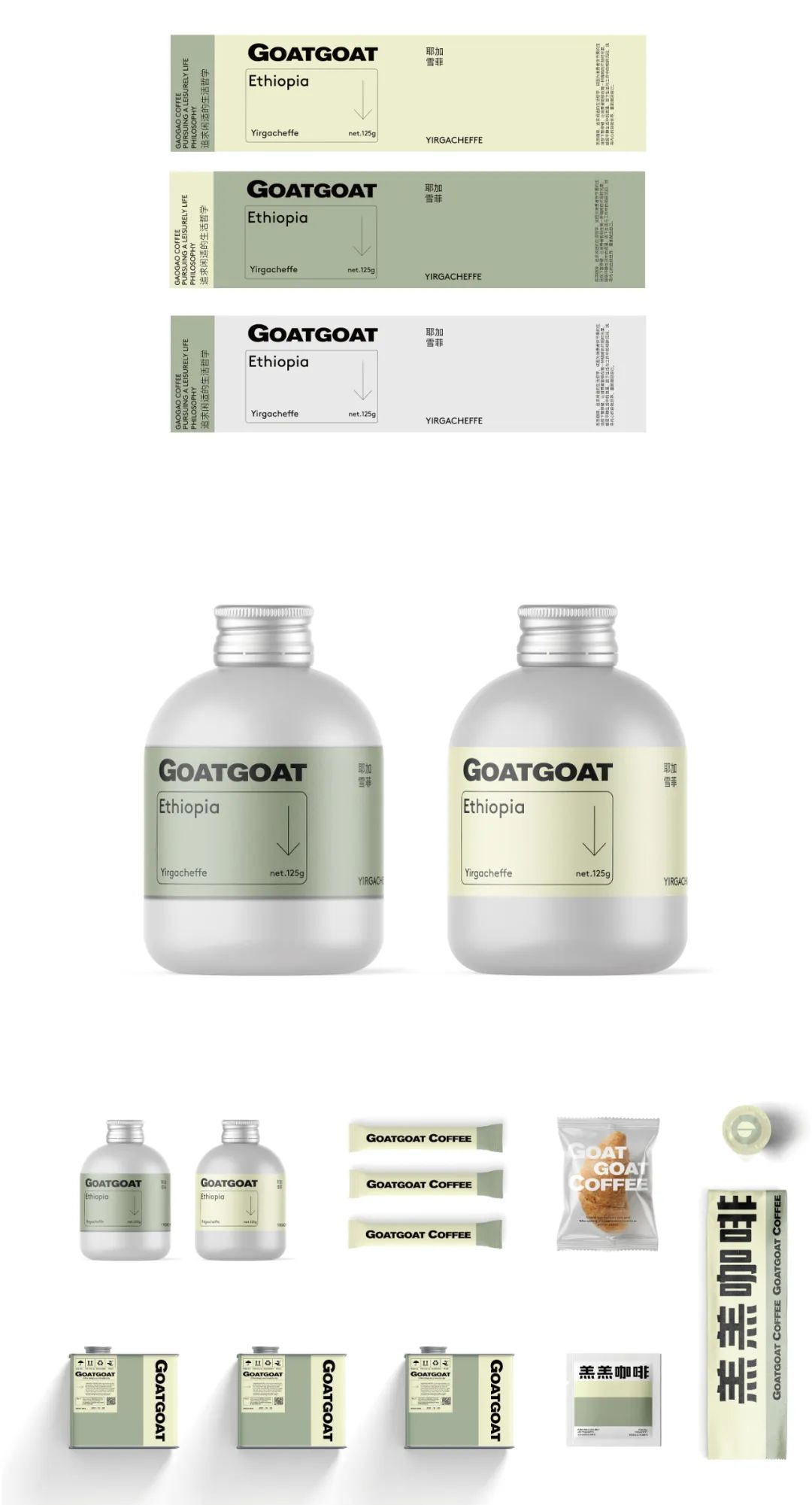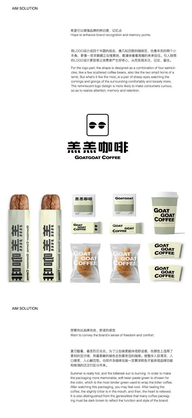在设计上,将LOGO分为四个半圆的组合,就像是几粒四散的咖啡豆,也像羊羔的两个小羊角,引人联想。而包装方面,选用柔和的豆沙绿去包裹苦涩的咖啡,塑造夏日中的一丝清凉感。