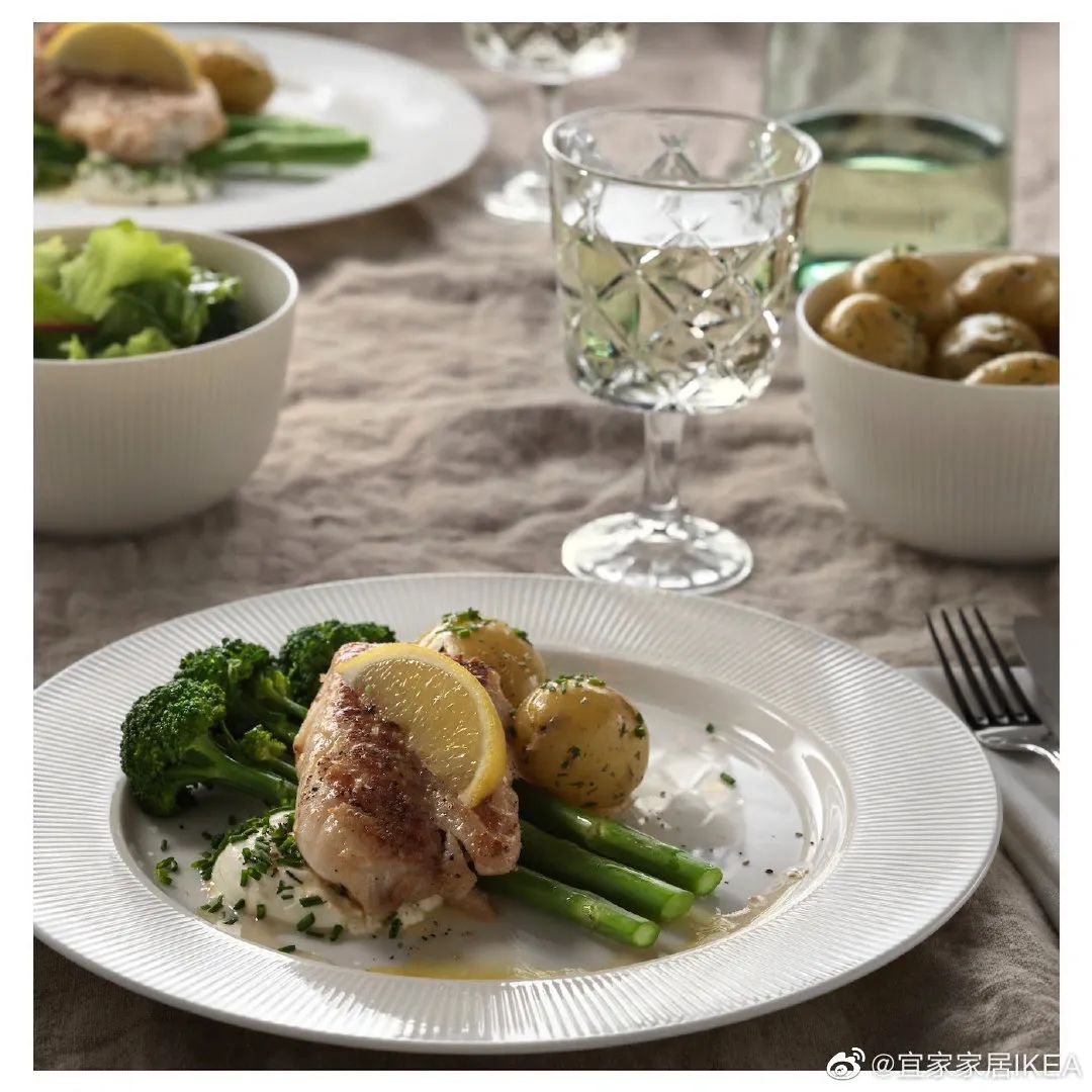 白色的餐具古朴典雅,花式和条纹又不失俏皮