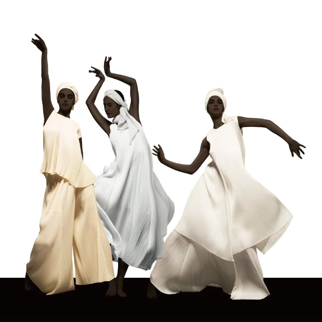 这种褶皱面料不易变形,垂感良好,可以自然展现穿着者身体的线条美,真正做到了“适应所有人穿着”,以此为主设计诞生了三宅一生旗下子品牌「Pleats Please」。