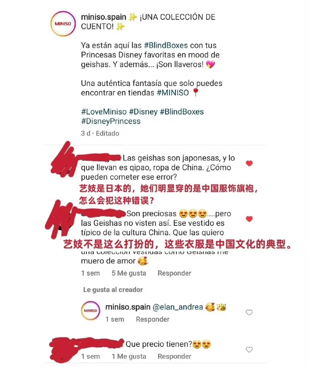 在七月份的时候,名创优品西班牙账号在Instagram上发布了一条「公主系列公仔盲盒」的图文,结果在贴文中,堂而皇之地将属于中国的「旗袍」写成了日本的「艺妓服饰」。