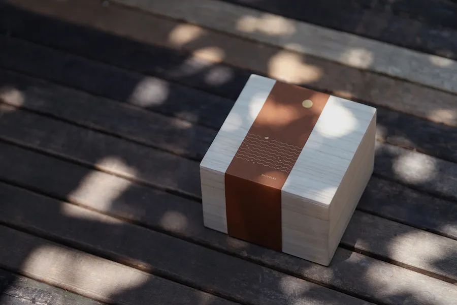 2021“月飞”中秋限量礼盒,内含黄铜手工圆盘一件、月亮津蛋糕三只、滤泡咖啡三包和桐木木盒一件。设计:森/CASA × 開化堂 × TAKE CAKE × St.1 Cafe'