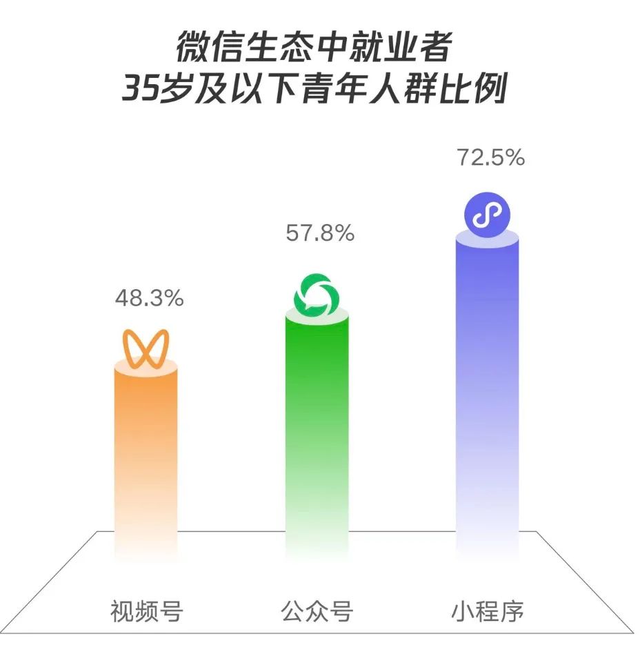 几天前,中国劳科院将以微信为研究样本,发布的了《数字生态就业创业报告》。报告显示,随着“平台+个人”等新型组织模式涌现,正在改变过往的就业岗位和就业结构。微信生态中的视频号、公众号和小程序,分别有47.3%、31.7%和28.9%的从业者,愿意将其当作终身职业,这也契合追求个性和自由发展的90后、95后的就业偏好。