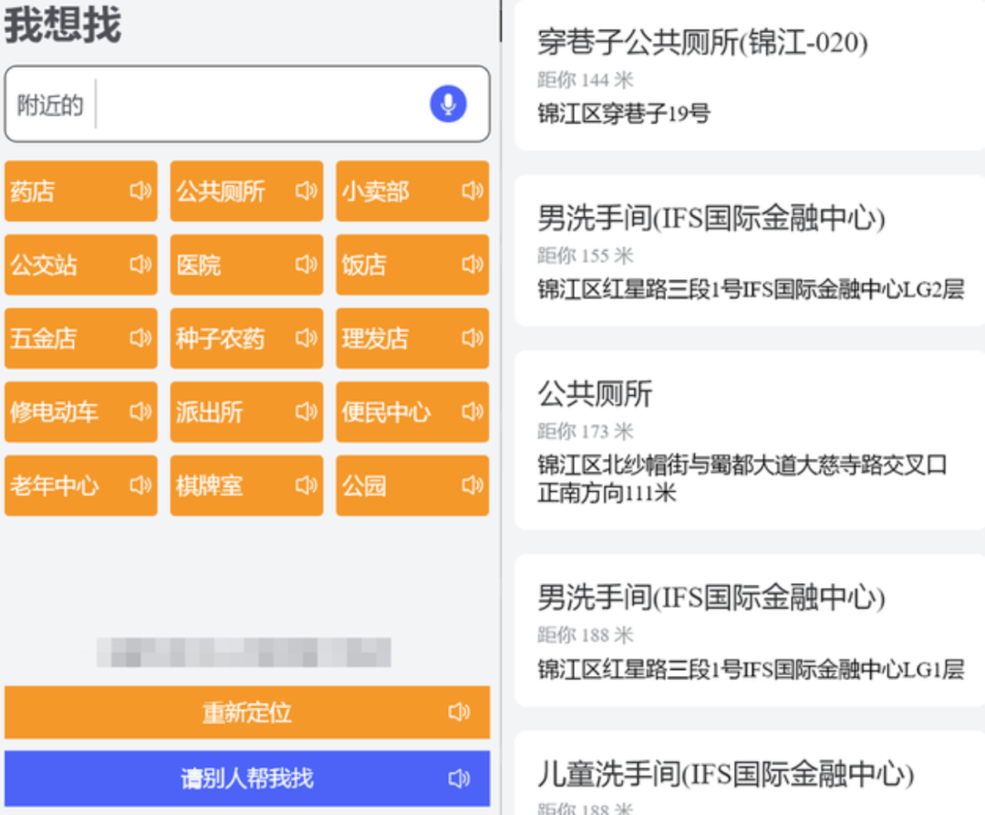 出生于四川南充伏虎镇的邱大川,高中辍学后,在北京中关村闯荡过九年。2013年,他回到家乡,在镇上开了一家建材店。有一次,大川的母亲急需买药,但由于不识字,又找不到人问路,只能打电话求助大川。母子俩又是打电话,又是视频通话,费好大劲找到了一家药店,而这家药店离大川母亲不过200米的距离。这次的经历,促使他自学编程,为母亲开发一个小程序——附近搜搜,专门用来认路,交互界面也做了适老化调整,并配置了语音转文字功能,解决不识字老人的输入需求,帮助他们找到附近的公共场所——公交车站、公共厕所、老年中心、药店,或是卖种子农药的商家。