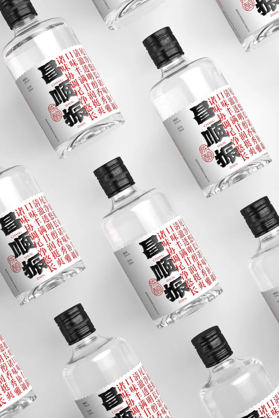 瓶身上的“昌顺振”以红色毛笔字呈现