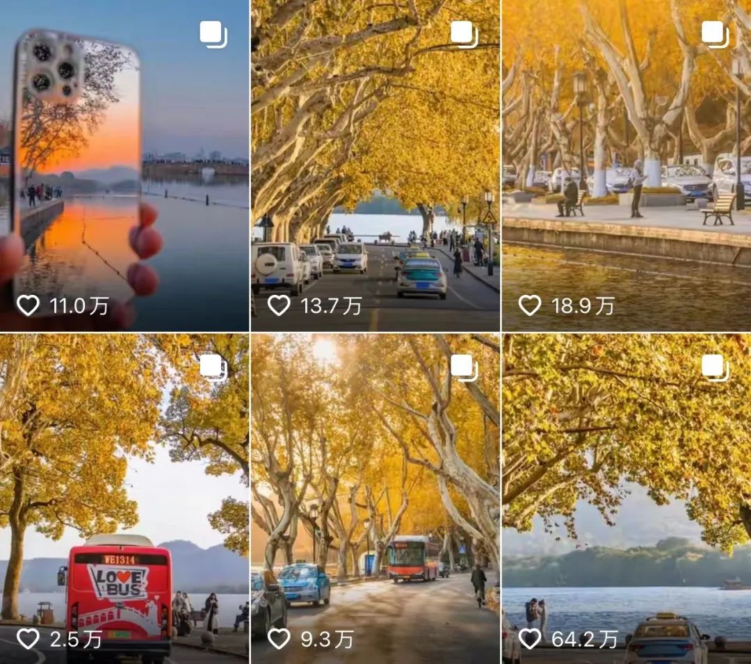 去年11月,摄影博主“白胖子Jacques”发布的第一条抖音视频,记录杭州西湖的深秋美景,被抖音号“美丽浙江”转发,同时也收到部分“求原片”的消息。恰逢抖音图文功能全面上线,白胖子接连发布了多组杭州西湖边的秋景图文,单条图文最高点赞量达64.2万。