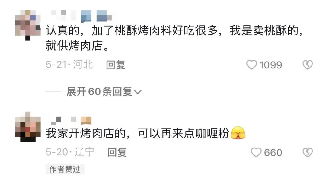 截至目前,“小王今天喝点啥”已经积累了42.4万抖音粉丝,单条图文最高点赞量达12.5万,分享了一个烤肉蘸料配方。虽然配方并不复杂,但胜在真实有用——是她特地找楼下烤肉店小哥亲手写的配方。评论区还吸引来其他烤肉店老板留言,分享自家小秘方。