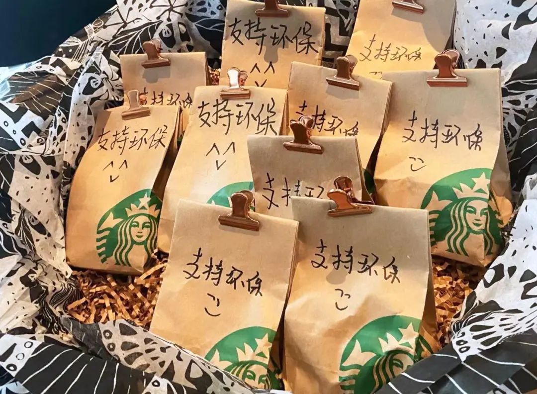 在周边上,星巴克近期还推出了由咖啡渣加工制成的咖啡杯、餐盒等。