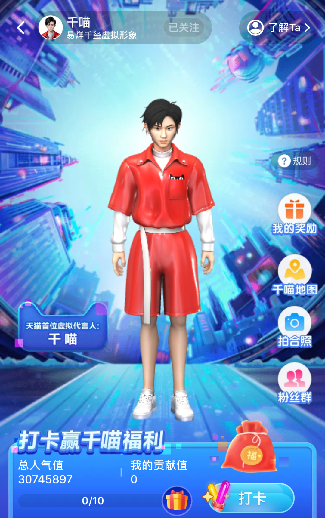 在这个平行世界中,一个名为“千喵”的虚拟偶像会跃入屏幕, 他是易烊千玺的首个个人虚拟形象。