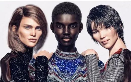 在2018年,法国奢侈品品牌Balmain发布品牌的广告中,主角是三位虚拟模特。
