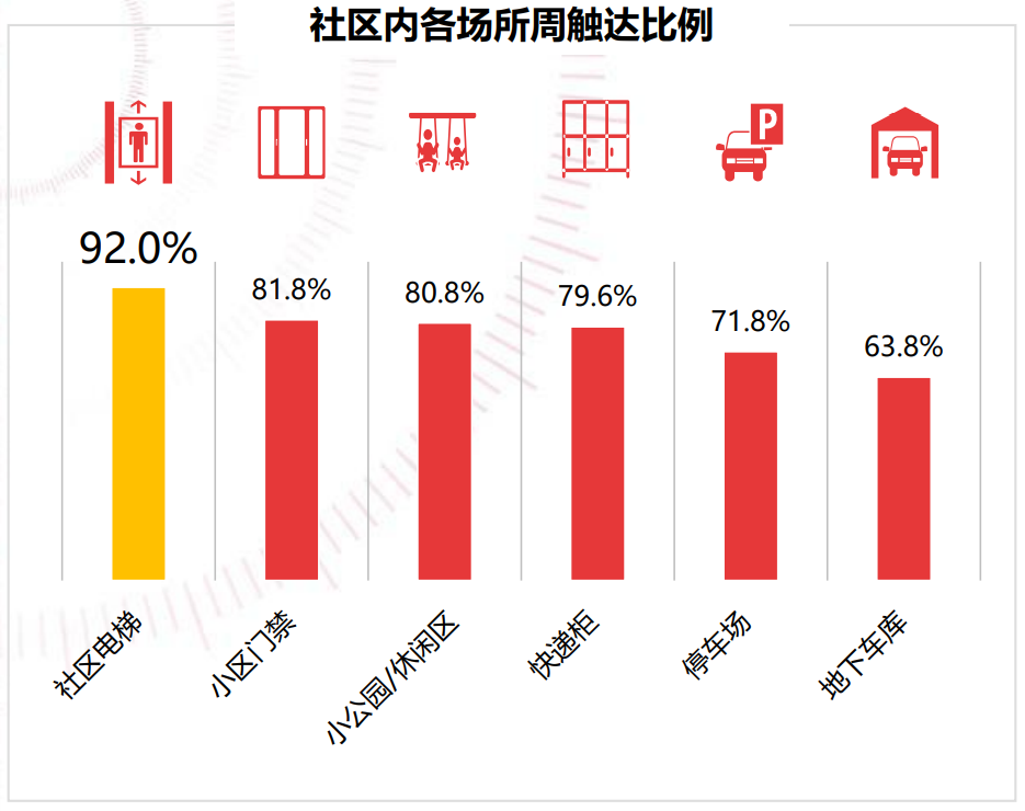 秒针的监测数据显示,社区梯媒以92%的周触达比例,成为社区内触达率最高的户外媒体。其中,受众日均乘坐4次社区电梯,相比其他户外广告形式,社区梯媒是高频且必经的媒介触点,短期曝光能力十分突出。