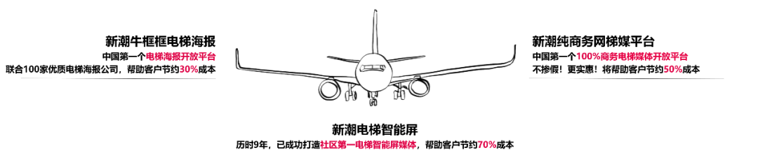 现在,智能屏已经是新潮传媒的运营核心,不到梯外LCD、框架海报一半的价格就能实现全覆盖,并且通过强输出形成自己独有的传播风潮。在站稳社区第一后,新潮传媒高调进军了商务网和电梯海报市场,“一体两翼”的生态已经打造完成。