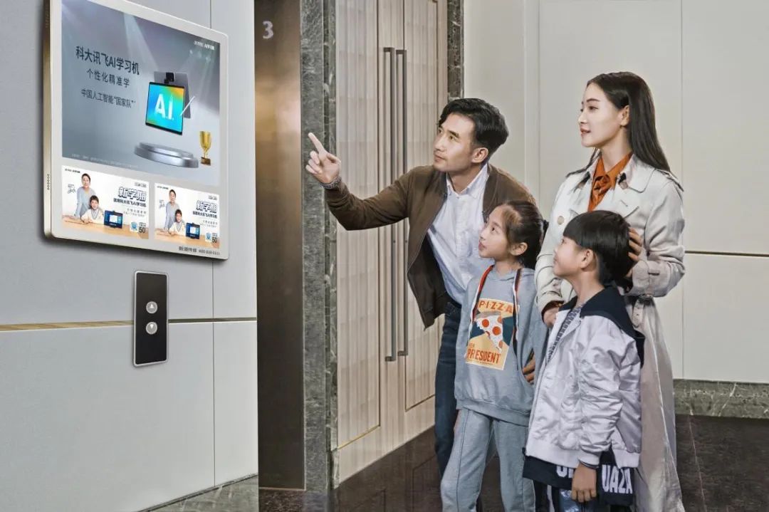 今年,科大讯飞携新产品AI学习机,牵手新潮传媒的智能屏及牛框框电梯海报,实现了对家庭人群的规模化触达。