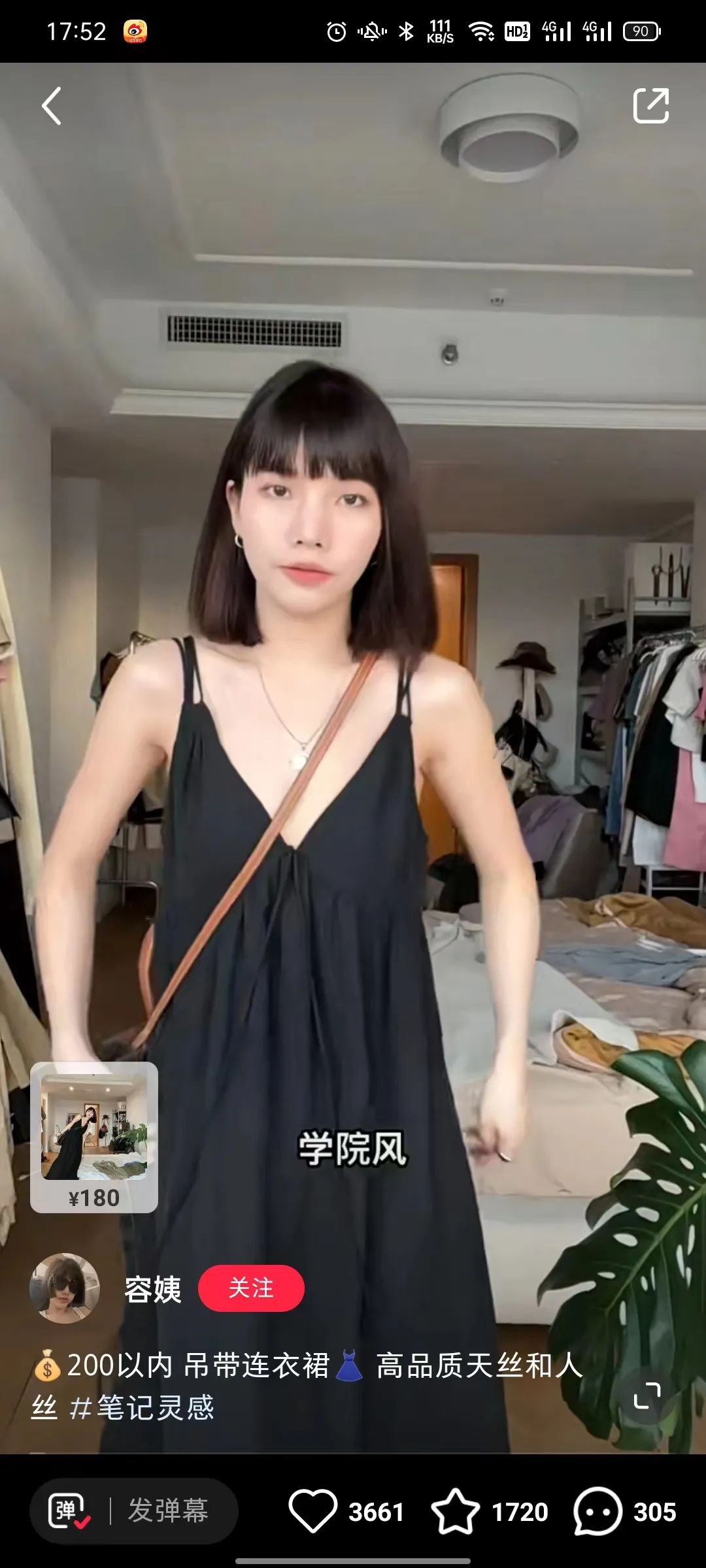 从博主正常发布短视频的内容可以看出,博主是自己进行拍摄,自己入镜进行服饰试穿的(如下图所示),内容多是以服饰如何搭配为主,内容较为统一,可复制性很强。