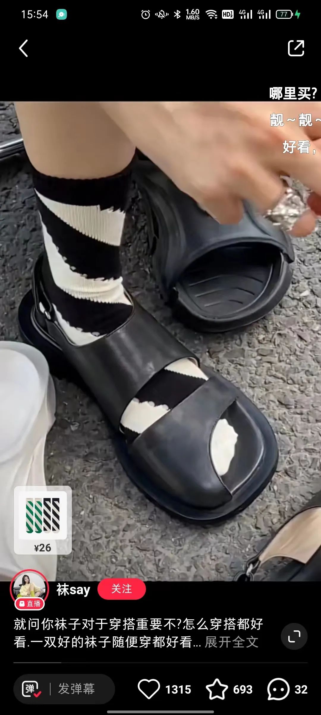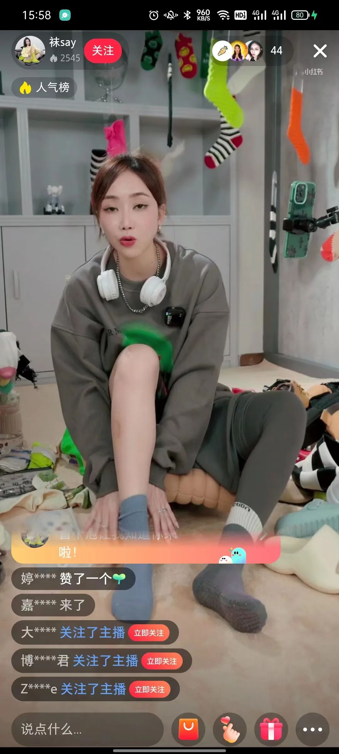直播的内容也是非常简单的,和短视频的内容相差不大,以试穿袜子然后进行不同的搭配为主,博主可以自己一个人完成,降低直播带来的成本问题(如下图所示)
