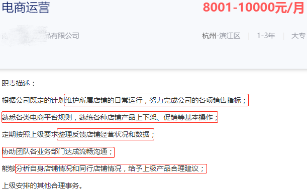 工作内容堪称五花八门,优化、推广、营销、策划内容、撰写文案、跟踪维护、数据分析、收集反馈、上架下架商品等......