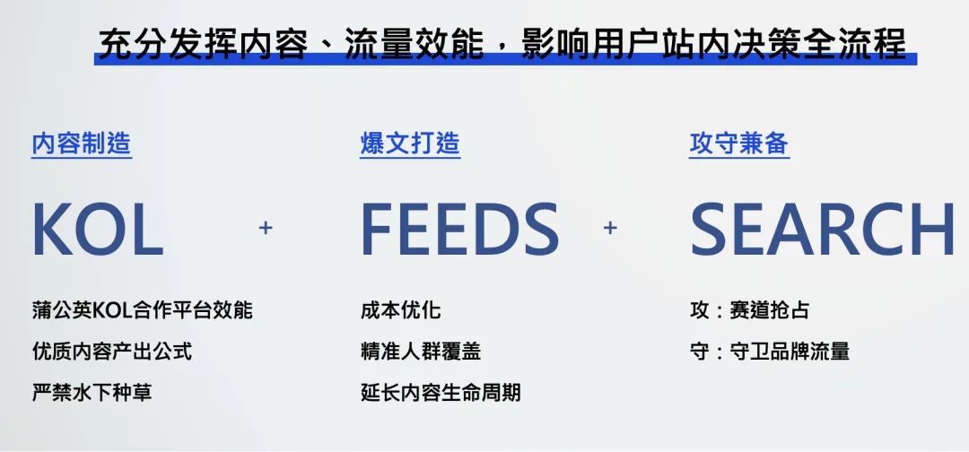 KFS内容营销组合策略第一步K,即依据小红书站内数据洞察,通过小红书蒲公英平台筛选出合适的博主,作为品牌价值的“放大器”和“转化加速器”,在品牌与用户之间搭建起一座高效沟通的桥梁。通过KFS中的Feeds信息流广告与Search搜索广告,用商业流量帮助品牌实现爆文孵化,延长优质内容生命力。