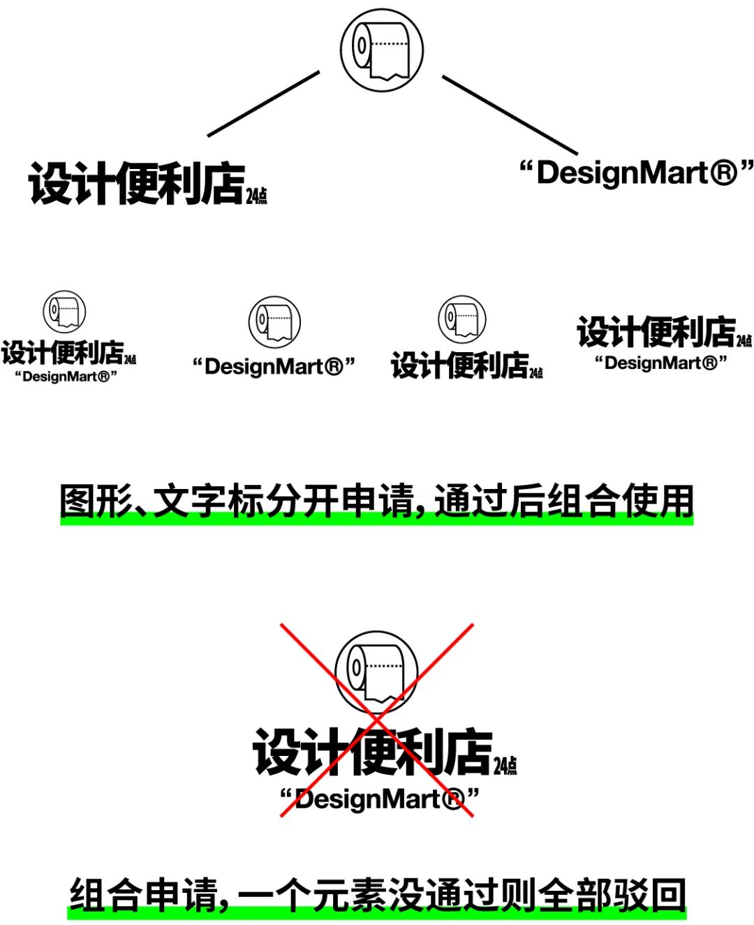 不知道你们有没有经历过设计方案通过了,但是因为无法注册logo而被推翻重来的经历?之前我们就遇到过这种情况,所以如果能够在方案开始前,就对品牌名是否已经注册进行确认,并且将未注册情况下的风险告知客户,就能够帮助我们在设计过程中规避许多意外。