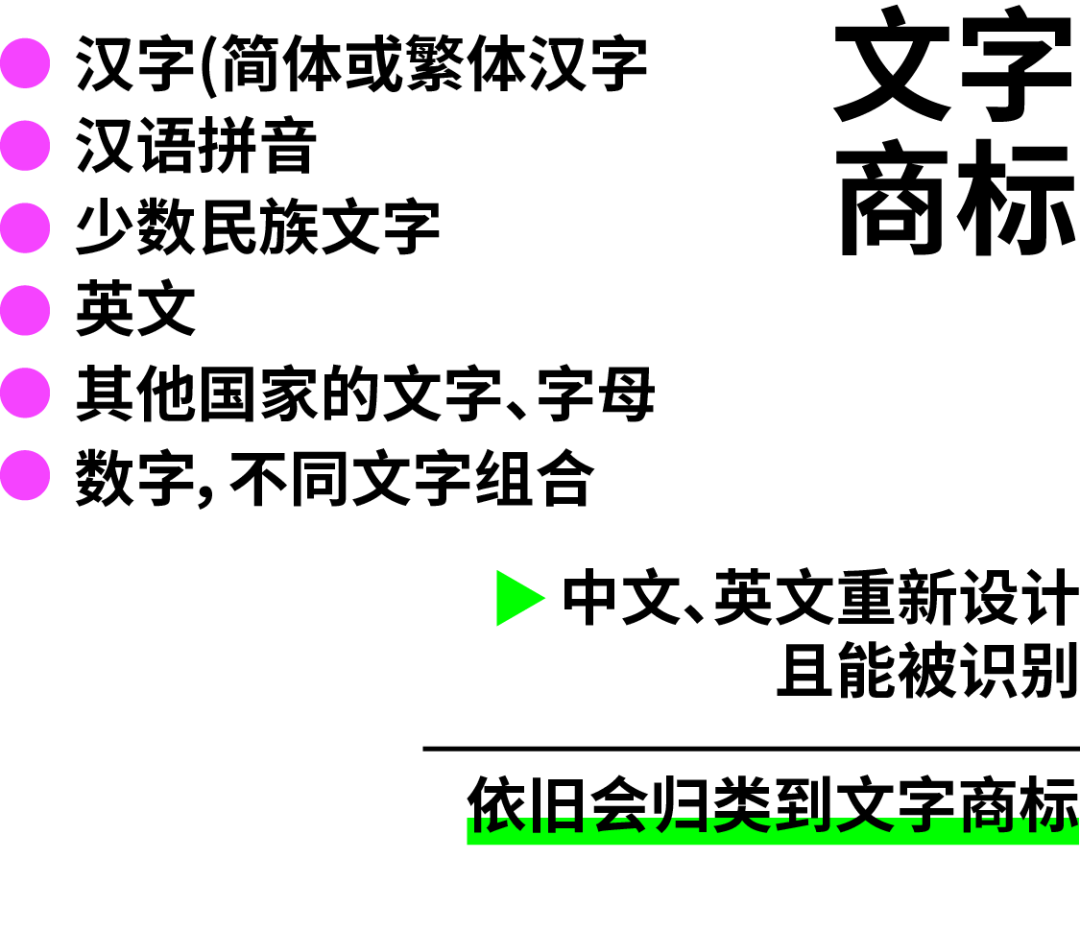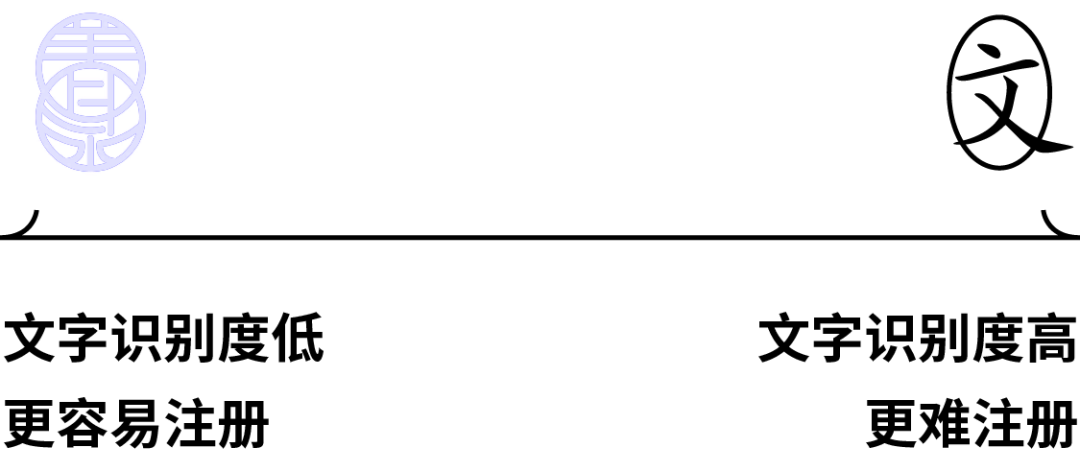 过去很多人因为文字商标注册不了,就会选择曲线救国走图形商标路线,但这个前提是如果普遍能够辨识为文字,那么依然会列为文字商标,所以设计的越不像文字则通过率越高。