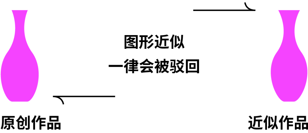 除了上述情况之外,还有一个经常出现的情况就是已经有近似图形在先,所以也会注册不成功。图形如果出现了近似情况,哪怕你完全没有看过这个图形全凭自己创意设计出来的,在商标局的审核员面前也是没有区别会被驳回的,所以在设计完图形之后进行一个图形检索是基本操作。