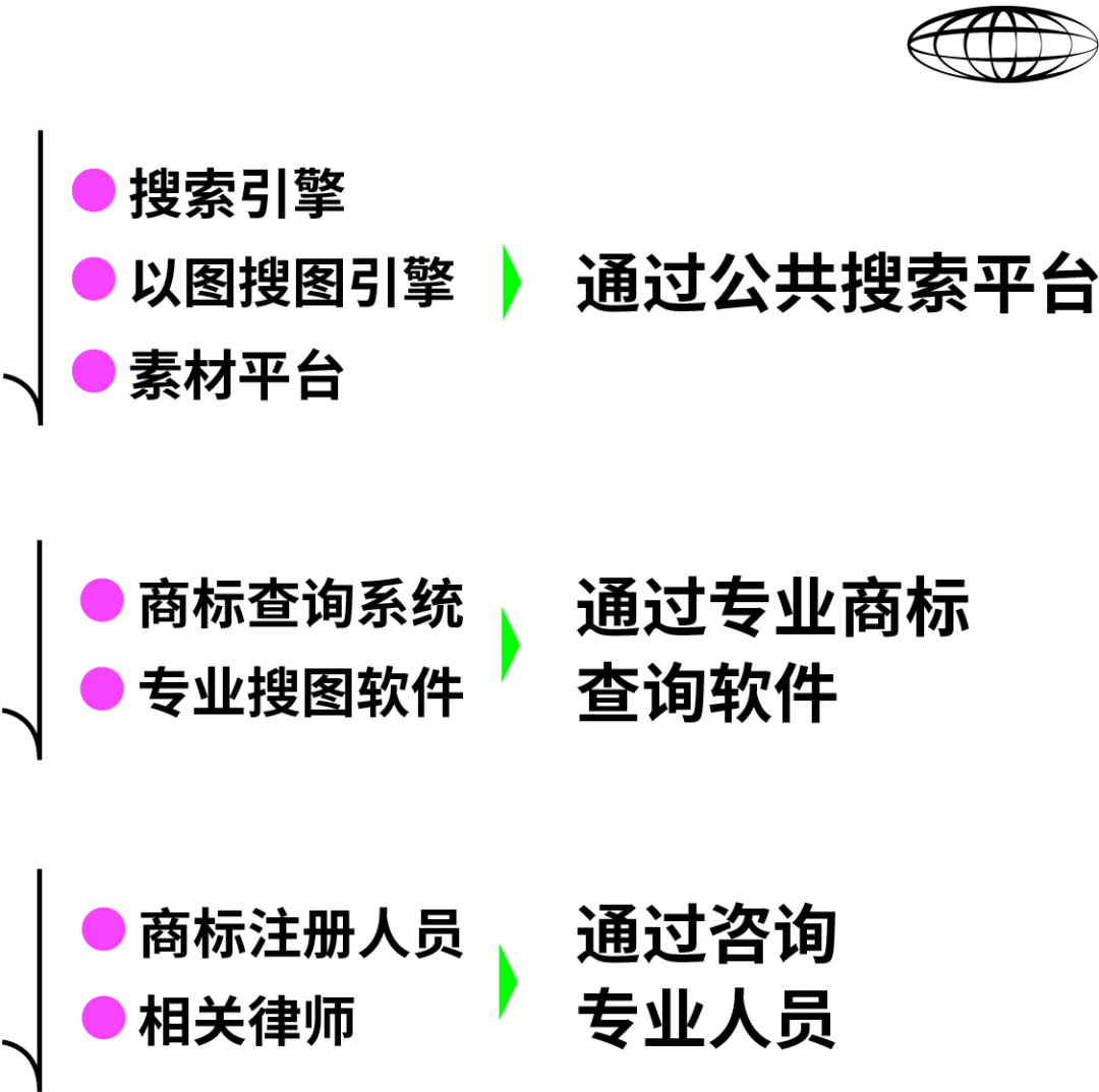 初步的图形检索可以使用百度识图和360搜图以及谷歌搜图等搜图软件,这样可以做一个初步的筛查。如果要更进一步则可以购买一些专业软件进行搜图,如白兔商标查询信息系统,或者可以向正规的商标注册公司专业人员进行咨询,专业人员在面对不同情况时都会进行评估,然后会给到专业建议。