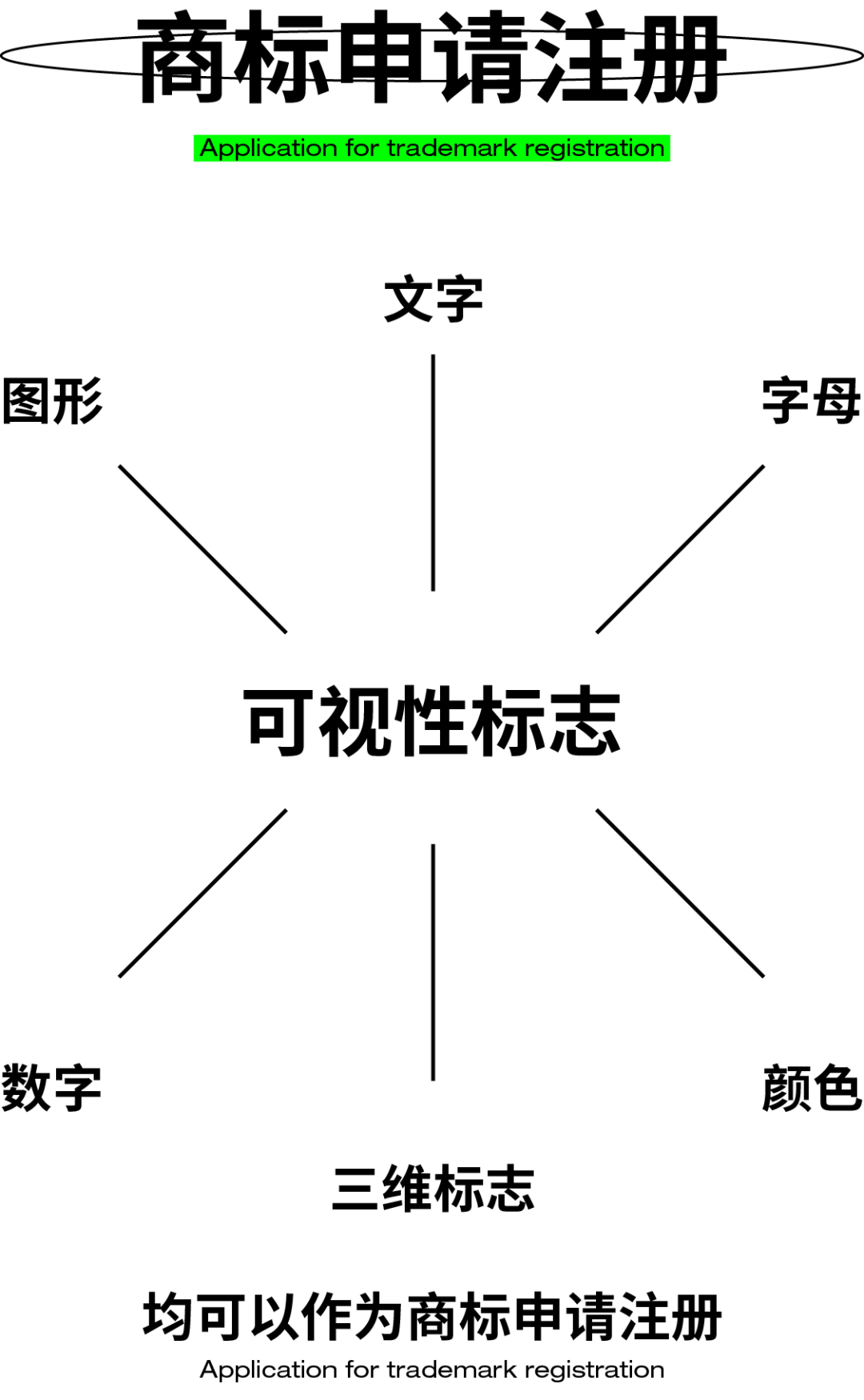 设计师设计的logo,在注册的时候我们都统一称其为商标,但是商标并不是只有图形logo,根据我国新《商标法》第八条的规定:“任何能够将自然人、法人或者其他组织的商标与他人的商品区别开的可视性标志,包括文字、图形、字母、数字、三维标志和颜色组合,以及上述要素的组合,均可以作为商标申请注册。”