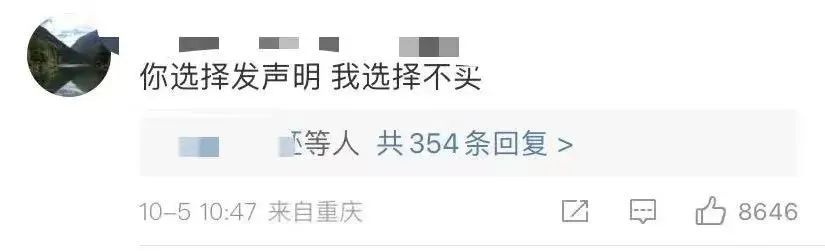 我们看到海天前两次发布的声明,从逻辑上或者是理性依据上来讲,确实没有太大的瑕疵,但其第一份声明实 际上并未站在消费者的立场,将 重点放在了追责上,第二份声明则把质疑当成消费者与品牌企业的对立,字里行间表现出了海天傲慢的态度。而事实证明,这种回应对于消费者来讲是不可接受的,有网友在评论区留下“你选择发声明,我选择不买”、“合不合法是你的事,吃不吃是我的事”的评论。